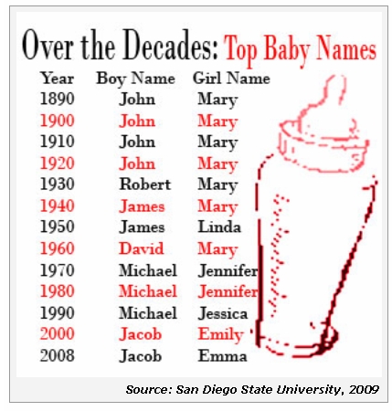 I think authors must learn to be experts on name-choosing, especially prolific authors who create lots of characters. We might search lists of popular names by decade, such as the one posted above. We might go the ethnic route and search popular names by custom or country. I recently came across my mother’s yearbook (1930s) and chose several names for my newest project from there. Eventually it’s hard to keep coming up with names we haven’t used before.