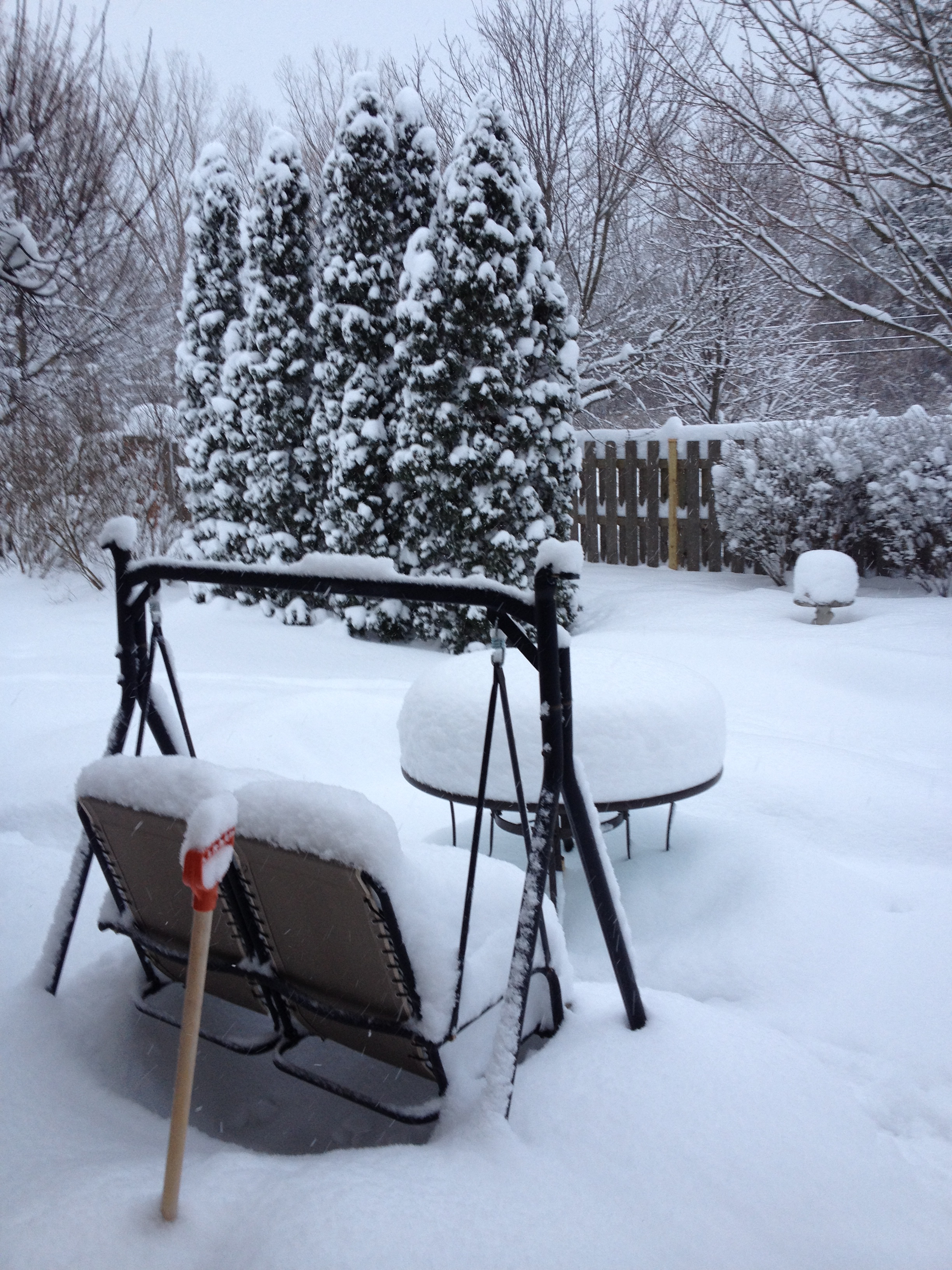 Our yard has pretty much looked like this all winter . . . which means the roads are often slick and the temps are below freezing. I end up staying home whenever possible.