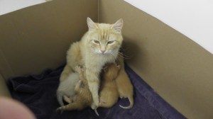 In the ongoing saga of the kittens, Prancy and her four kittens nearly died because she was too young to feed them as often as they needed to be fed. We saw her going down far too quickly, the kittens had no milk and were always crying, so I rushed to the local farm store and bought cat milk replacement. I ended up giving that milk to Prancy to drink. She now drinks three bowls every day. Though she’s emaciated, she now has the energy to get out of their playpen and walk around the garage with me, even into the house. The kittens are thriving and are very happy to see us when we visit.