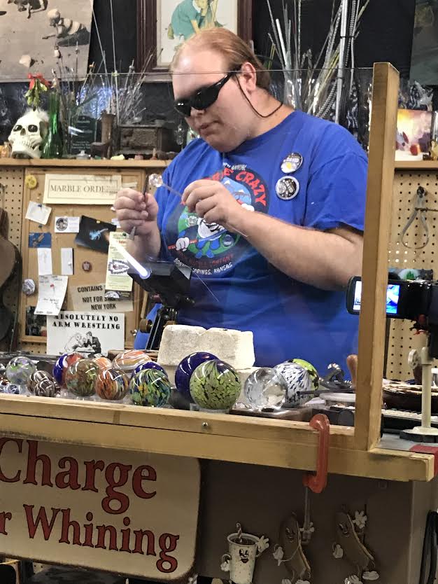 Last weekend my daughter, granddaughter, and I had to make a trip out of town—not for anything fun, but to complete some business. On the return, I was eager to get home. I’m on deadline with my current book, and wanted to get back to work. We were about halfway home when my daughter asked if I’d like to stop at a Moon Marble Company, a small factory and shop where they make and sell marbles in Bonner Springs, Kansas. She’d mentioned it to me on a couple of occasions thinking it would be a fun place for all three of us to visit.