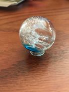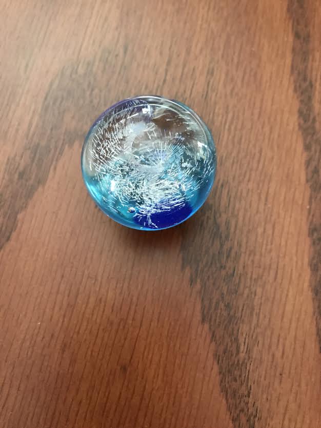 Granted, they didn’t use bellows and forge, but even with the propane tank and electric kiln, it was fun to see the process. Believe me, I didn’t realize that creating handmade marbles was so time consuming and required such skill. Nowadays, most are machine made, but there are still craftsmen creating some lovely marbles. This is one of the larger marbles that was created by an artisan at Moon Marble Company.