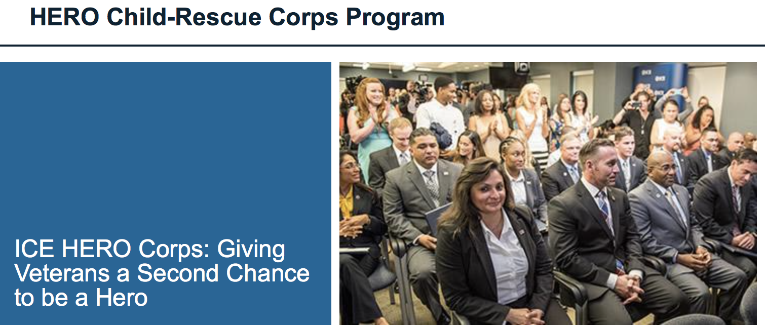 The Human Exploitation Rescue Operative (HERO) Child-Rescue Corps is a program developed by U.S. Immigration and Customs Enforcement’s (ICE) Homeland Security Investigations (HSI) and U.S. Special Operations Command (SOCOM) in conjunction with the National Association to Protect Children.