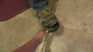 When he emptied out his boot later at home, I felt sorry for him. He had toughed it out like a real man. In fact, he continued to wear those boots–along with the rocks– while we went target practicing immediately after our hike.