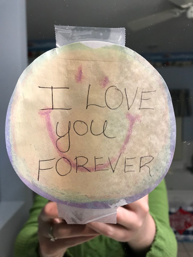 My husband and I have a sticky note on our bathroom mirror that says, “I love you forever.” On a daily basis we will each move it to our spouse’s side of the sink, when they are not looking. Sometimes we will put it right in the center where it will intentionally block the person from seeing their face in the mirror. Other times we might put it way up high, down low, to the left, or to the right. And it might also be straight up, upside down, or even sideways. We never know exactly where or how we will find it. But we do know that we are likely to find it on our own side of the mirror. This is just one small thing my husband and I do to bring a smile to one another’s face each day.