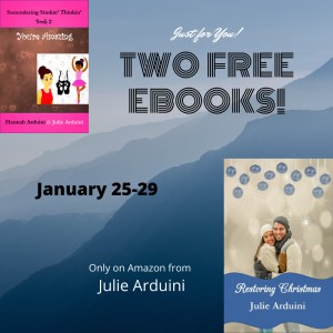 This free eBook offer for both You’re Amazing and Restoring Christmas is available January 25-29. If you enjoy them, please leave a review. The more reviews, the more Amazon promotes it. Thank you!