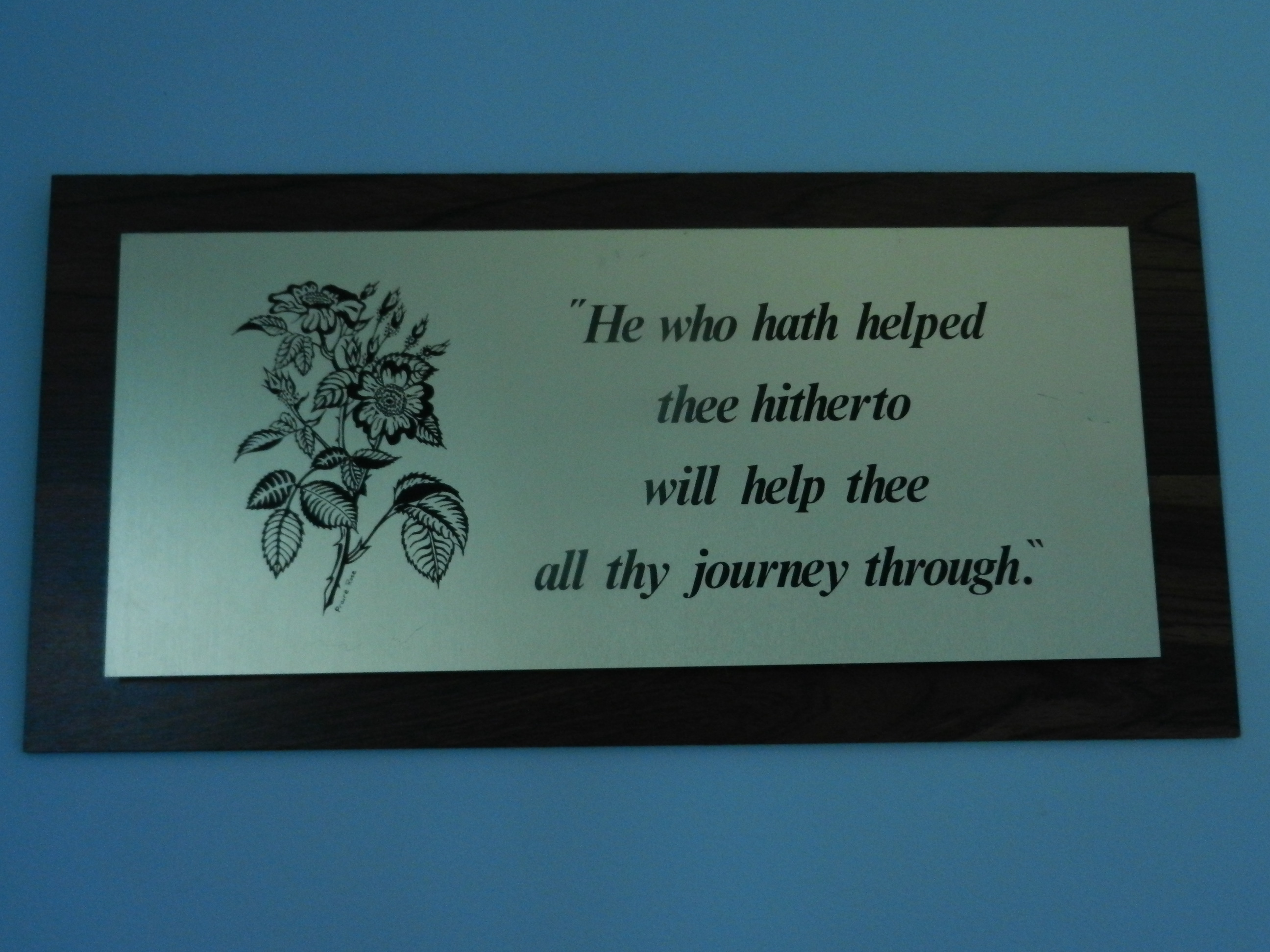 Years ago, my wife Jackie and I were moving 3,000 miles away to the east so I could return to school and embark on a new career. The small church that we attended gave us a loving send-off, a gift of money to help with expenses, and a small plaque that read: “He who hath helped thee hitherto will help thee all thy journey through.”