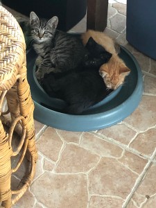Mama kitty and three four-week old kittens have become the newest members of the Carmichael household. I believe they were sent to my door in order to lessen my sorrow and allow me to give them a new home.