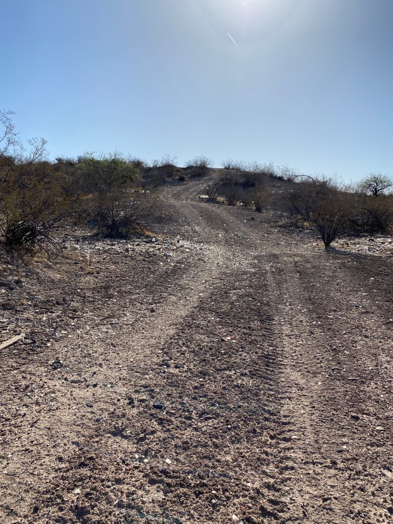 We hiked over a fairly steep hill and took a dirt track that leads through a bunch of old glass. I thought he would enjoy seeing the sparkle. When we reached the next hill, a much smaller one than the first, he stopped and got so excited.