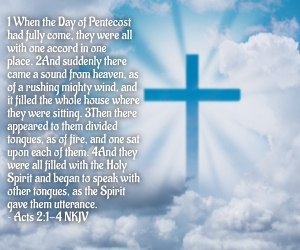 This upcoming Sunday is Pentecost or Whitsun (Whit Sunday). It commemorates the receipt of the Holy Spirit by the disciples and followers of Christ. Jesus Christ had promised the disciples a helper and had instructed them to wait for the gift of the Holy Spirit: “I am going to send you what my Father has promised; but stay in the city until you have been clothed with power from on high.” ~ Luke 24:49 NIV