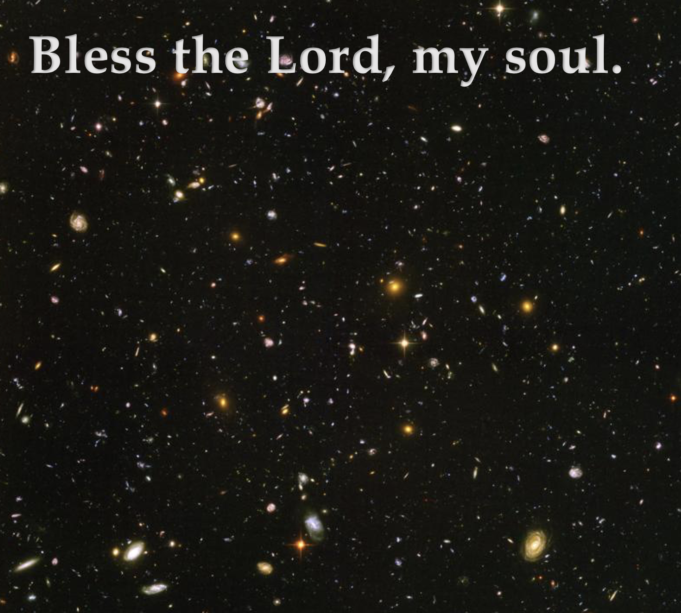 “Bless the Lord, my soul; my innermost heart, bless his holy name. Bless the Lord, my soul, and forget none of his benefits. He pardons all my guilt and heals all my suffering. He rescues me from the pit of death and surrounds me with constant love, with tender affection. He contents me with all good in the prime of life, and my youth is ever new like an eagle’s. –Psalm 103: 1-5