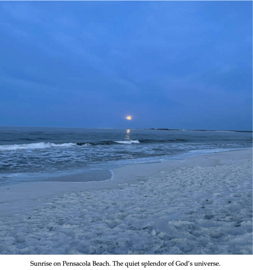 The message served as reminder to him that no matter what happens in life, God, who put the stars above and the ocean beneath, is always there, a constant port in every storm, a Father who loves us so much He sent His only Son to die that we might be saved.