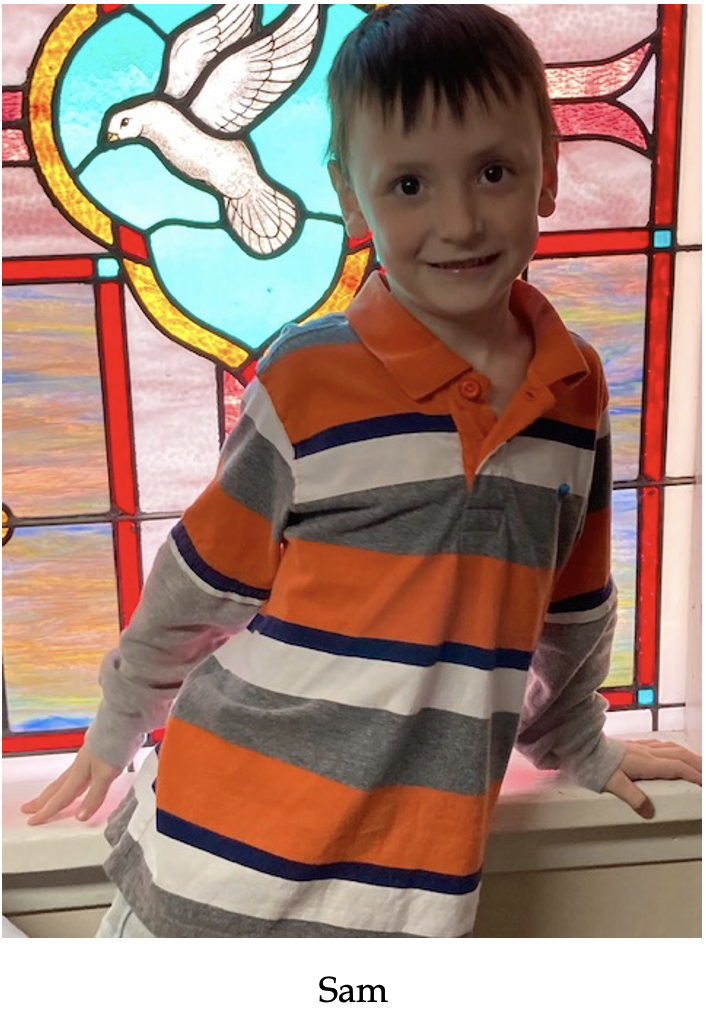 Sam is our quirky, down-to-earth, straight-talker who charms us with one glance of those big brown eyes. He has opinions about everything, and is bubbling over to share them. This past Sunday, we had him all to ourselves, and what a grand day it was! He came into the room—as all the children do—spilling over with the things that were on his mind. He lost his great grandmother recently, and treated us to a stream-of consciousness monologue about her death and death in general, which always includes his fantastical stories about dogs.