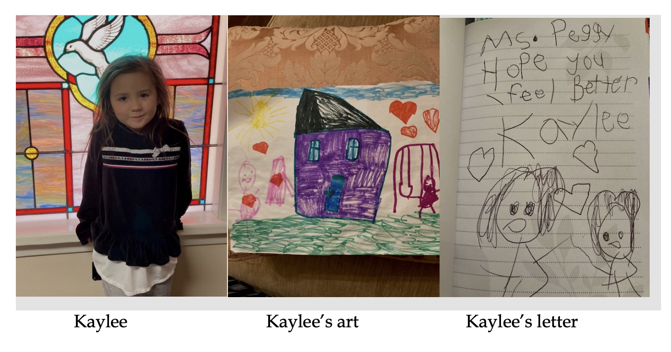 She drew the purple house and wrote the sweet letter to me after the horrific slip-and-fall that kept me out of the Sunday school class for a while. She brought me a lovely journal, too. The gifts were her ideas. What a beautiful, giving heart she has! It will be one of her best qualities when she’s a grownup.