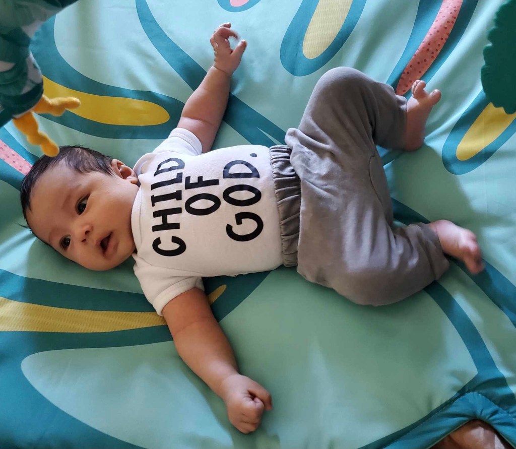 This past weekend we were visiting our daughter, son-in-law, and newest grandson. The baby is two months old. He’s trying to move but doesn’t have the coordination to go anywhere. His arms wave, his legs bunch up, but he’s still on his stomach, head lifted, and an expression that looks like utter frustration.
