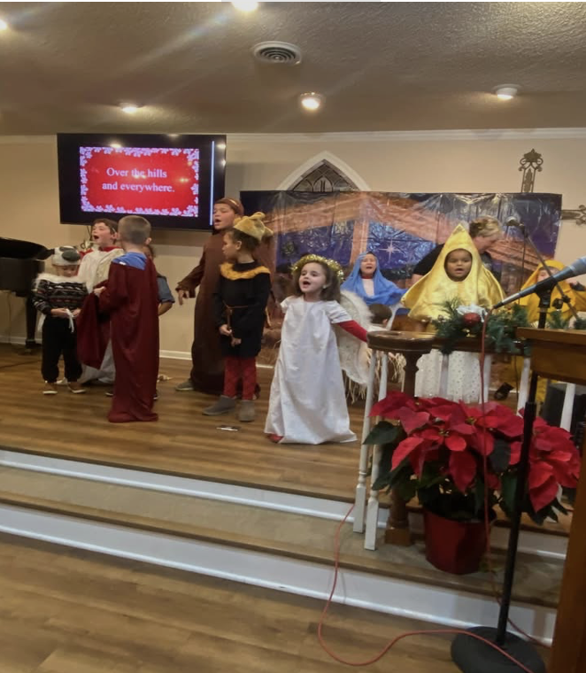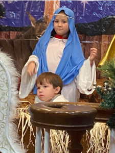 At our little country on a cold Sunday night before Christmas, our small group of children did a pageant that surely ranked right up there with The Best Christmas Pageant Ever. The donkey got into a fight with the sheep, Joseph rocked out with an imaginary electric guitar to “Go Tell It on the Mountain; the star got sleepy and yawned during the whole song; Mary and the Littlest Angel belted the song in a style worthy of Broadway, and baby Jesus stole the show by hamming it up from the manger.