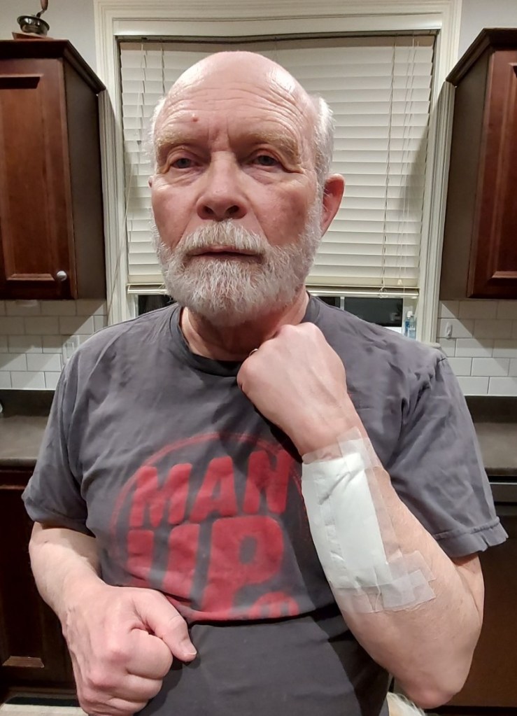 2. Don’t do anything you don’t normally do or volunteer for a job that is not your responsibility. A while after my back injury, I was helping to put away groceries, reached for something, and scraped my forearm over the corner of a box of pop cans. As we get older, our skin gets thinner and more fragile. My simple act of reaching for something tore a gash in my forearm four inches long, a quarter inch wide, and a sixteenth of an inch deep. Even worse, I am Canadian, so the gash was 100 millimeters long. Injuries like mine are another reason drinking pop is not good for your health. But that is not the lesson to be learned here. Obviously putting away groceries is women’s work, and I should have left it to the professional (my wife) to do it.
