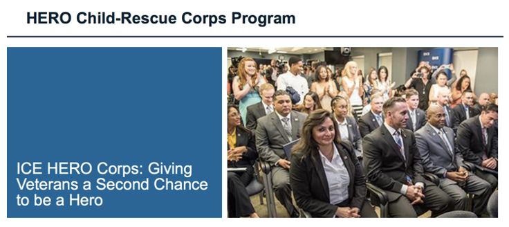 The Human Exploitation Rescue Operative (HERO) Child-Rescue Corps is a program developed by U.S. Immigration and Customs Enforcement’s (ICE) Homeland Security Investigations (HSI) and U.S. Special Operations Command (SOCOM) in conjunction with the National Association to Protect Children.