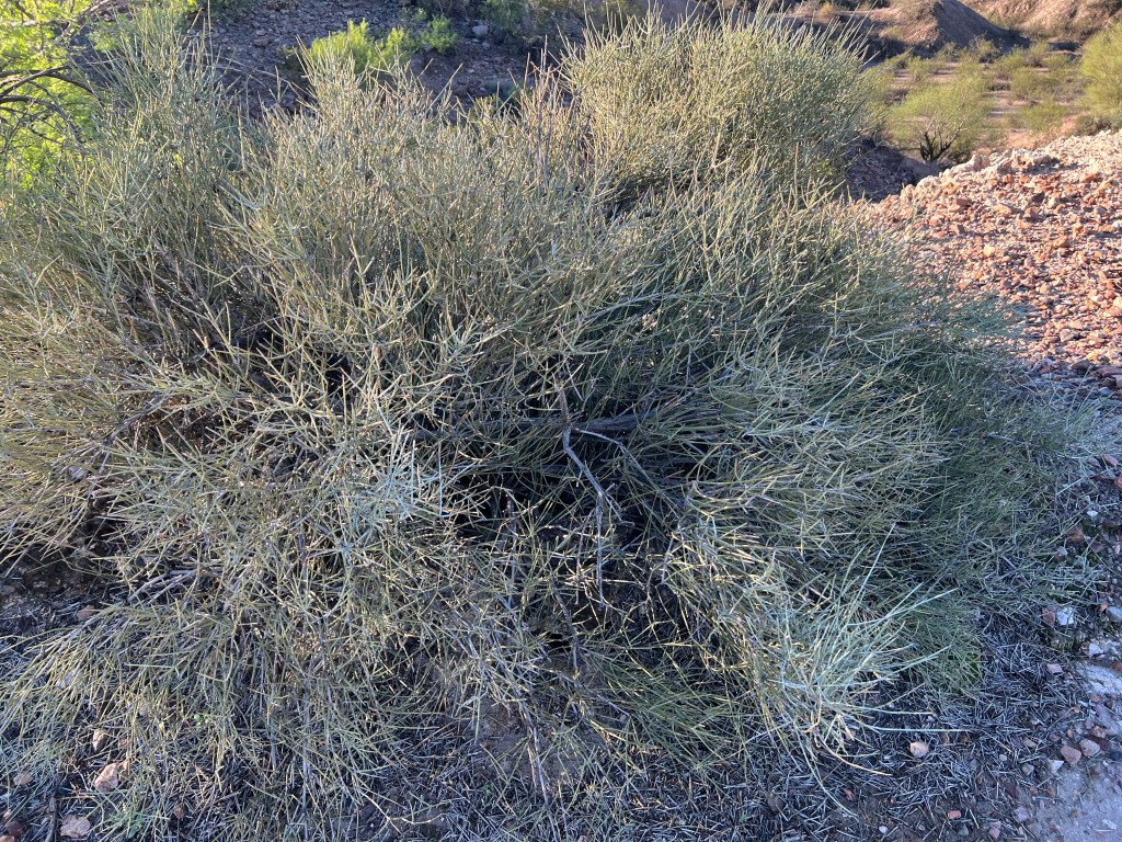Below is a picture of the same ephedra viridis as above, only after several rains. It is so green and vibrant, much different than the dead-looking plant from the drought.